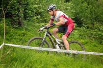 Es ging auf der Mitteldistanz über 2 Runden mit insgesamt 49 km und ca. 1500 Höhenmeter. Mit dem diesjährigen Zweiten im HarzCup Peter Kuberka war schnell der ärgste Konkurrent ausgemacht. Da die Lust auf eine Hetzjagd aber nicht sehr groß war kümmerte Jörg sich nicht um die anderen, sondern ging die Sache locker an. Es zeigte sich aber bald, daß die Beine gut waren. Nach der ersten Runde bekam er einen Rückstand von 40 Sekunden auf Kuberka mitgeteilt. Also hieß es am Ball bleiben: „Vielleicht geht da noch was“. Auf einem Wiesentrail ca. 5 Kilometer vor dem Ziel war dann der Ausreißer in Sichtweite. Es dauerte aber noch bis zur legendären Wipperdurchfahrt, welche sich 300m vor dem Ziel befindet, bis der Anschluß geschafft war. Im Fluß wurde Kuberka überholt. Durch einen Fahrfehler mußte Jörg aber am Uferabsatz vom Rad, Kuberka konnte wieder vorbeiziehen. Dann war keine Zeit mehr die Federelemente zu blockieren und der Zielsprint ging verloren.